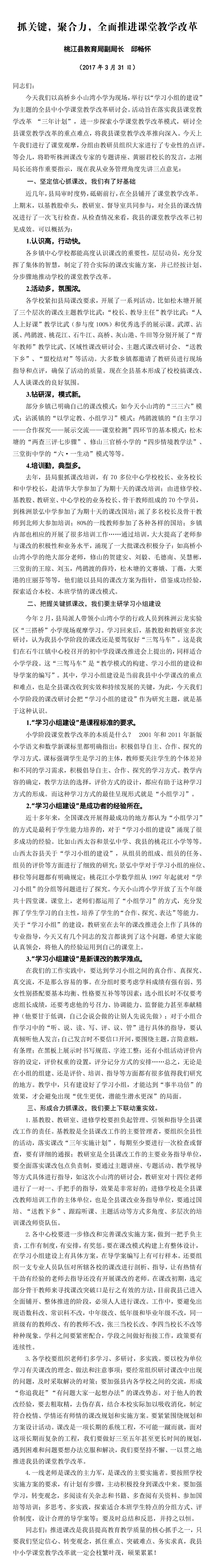 抓关键,聚合力,全面推进课堂教学改革桃江县教育局副局长 邱畅怀