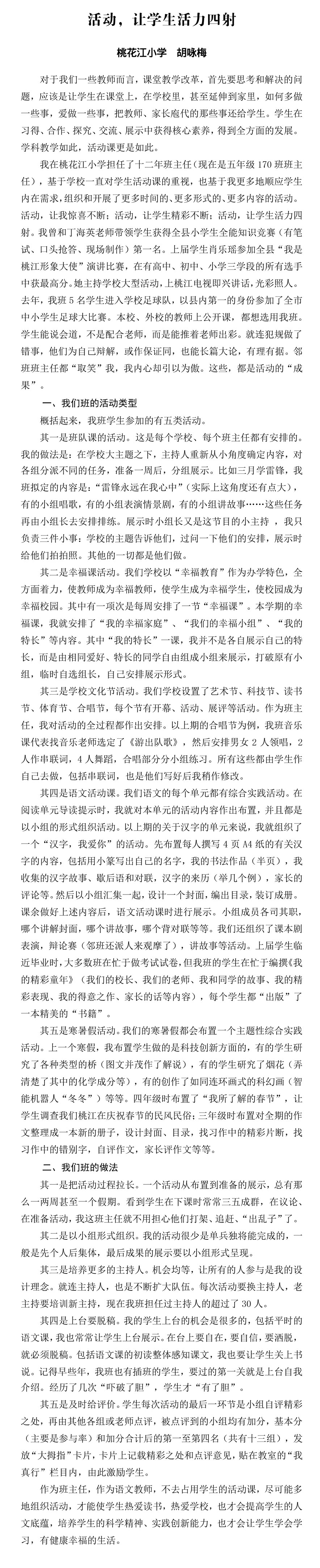 活动,让学生活力四射