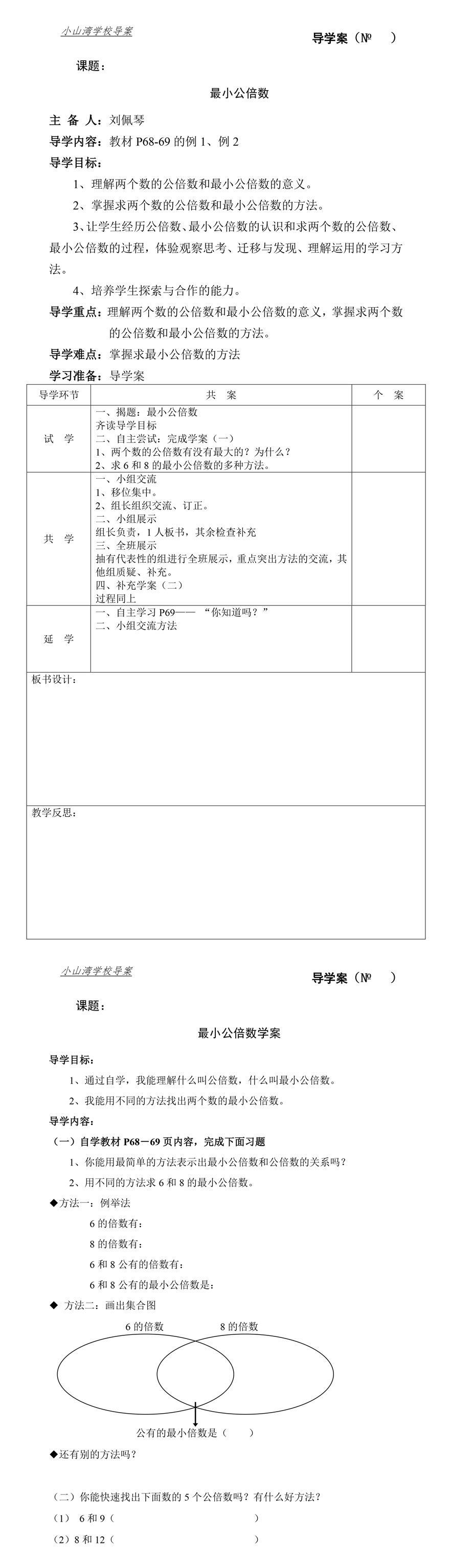 五年级下册《最小公倍数》