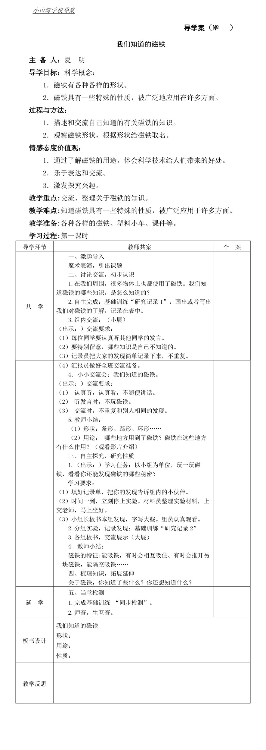 三年级《我们知道的磁铁》导学案(夏明)