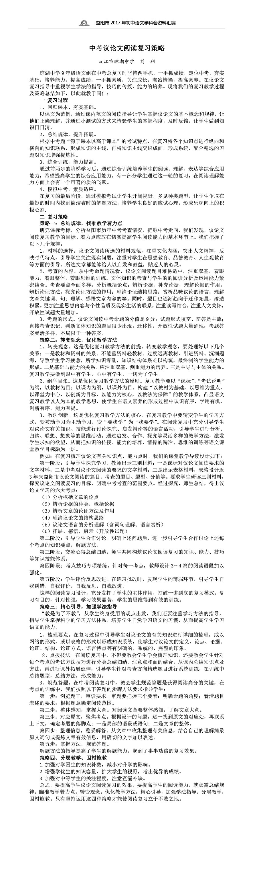中考议论文阅读复习策略